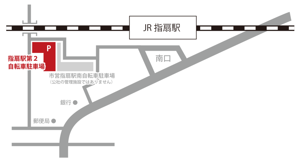 指扇駅南口から川越方面へ線路沿いにある一時利用専用駐輪場です。グリーンエリア(幅広い)で利用しやすい区画もあります。